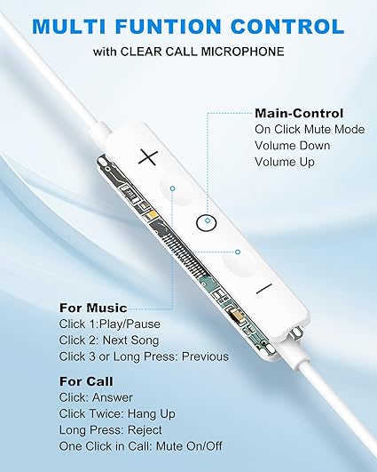 - [Advanced design and hands-free microphone] – The wired button design allows you to listen to music hands-free with the multi-function button without accessing the device. Lightweight, it fits your ear perfectly for a long time, it is very suitable for listening in sports, travel or daily wear, and has excellent sound quality of super bass, which can bring you perfect audio enjoyment.
