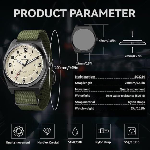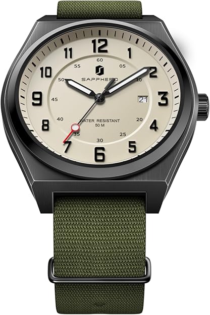 SAPPHERO Men’s Watch Military Sports Watch 50M